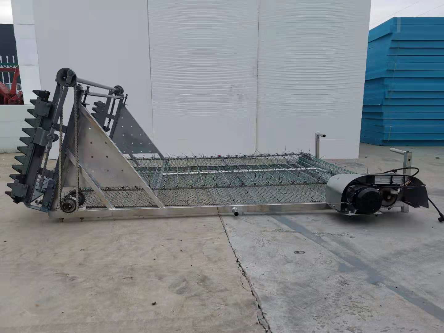 材質(zhì):鏈條、鏈輪、輸送桿采用不銹鋼材質(zhì);刀具總成采用錳鋼材質(zhì)。